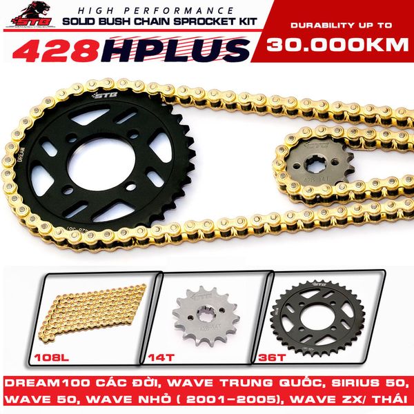 428HPLUS - 108L - 14 - 36 DREAM: Dành cho xe Dream, Wave sản xuất trước 2005, RS Trung Quốc, Si 50, dream wave Tàu.